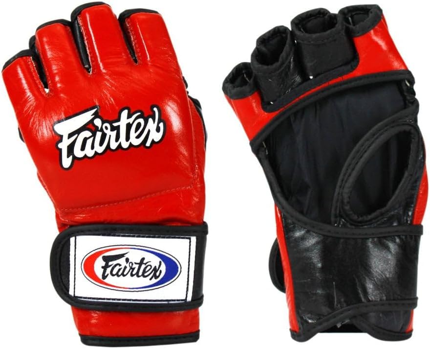 The Fairtex FGV12 Ultimate Combat Gloves are engineered for elite MMA athletes who demand top performance in both striking and grappling. Featuring an open-thumb loop, patented open-palm design, and split knuckles, these gloves offer unmatched mobility, grip control, and versatility. Crafted from premium genuine leather and built with Fairtex’s three-layer foam core, they deliver exceptional protection and durability. Trusted across major MMA promotions worldwide, the FGV12 continues to be one of the most iconic and high-performing MMA gloves ever made.